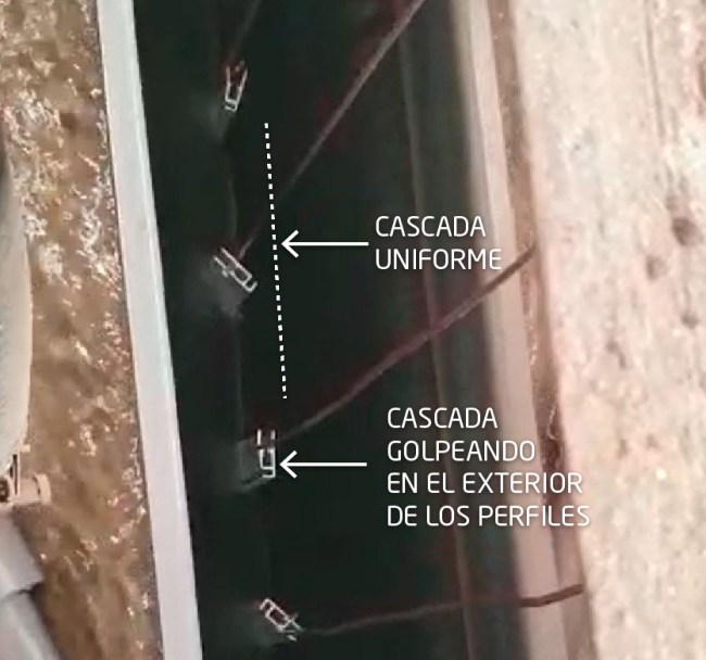ETAPA 3 – ENJUAGUE DE AGUA DI: Etapa por cascada. La cascada es uniforme y la altura donde impacta en el perfil es buena, se consigue un correcto enjuague exterior.