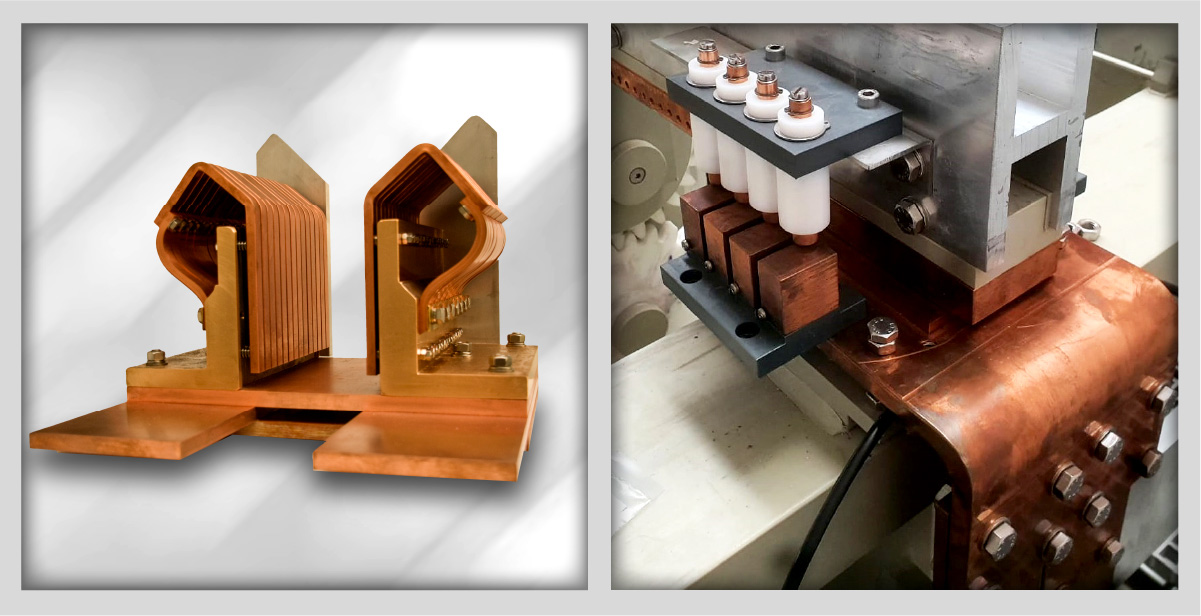 Since it is not possible to perform interference colouring under these conditions, we will have to avoid this resistance in the current input area, and this can be achieved by protecting the flight bar profile with a copper plate of the same dimensions as the electrical contact that transmits the current to the flight bar.