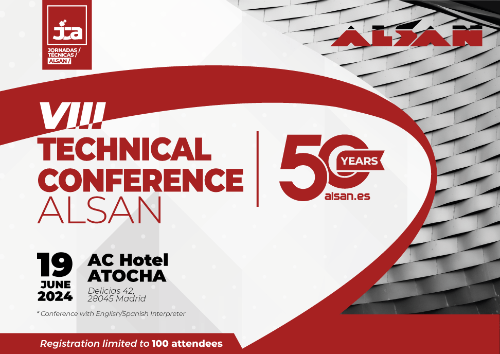 On 19 June 2024 we will be holding our VIII Alsan Technical Conference at the AC Hotel Atocha in Madrid. This historic event, especially significant as it coincides with our 50th anniversary in the aluminium industry, we hope that it will become an enriching experience for our customers and friends who accompany us.